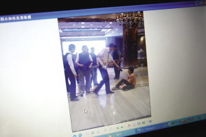有个知情者当时正好K歌出来准备回家,在大堂里,一个赤膊的男人被打倒在地,地上有一摊血。他用衣服擦着身上的血,但几个穿着黑背心的男人还是冲上来打他。