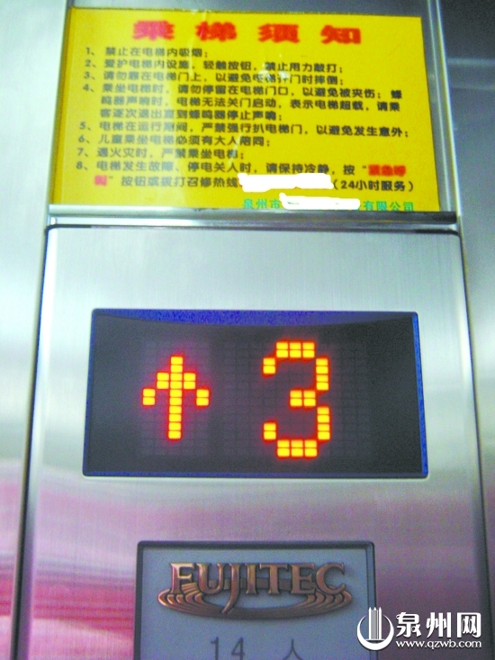 他说,如果电梯卡得很厉害,通过三角钥匙打不开,可直接报警或拨打泉州市质监局特种设备监督检验站电话22560566。