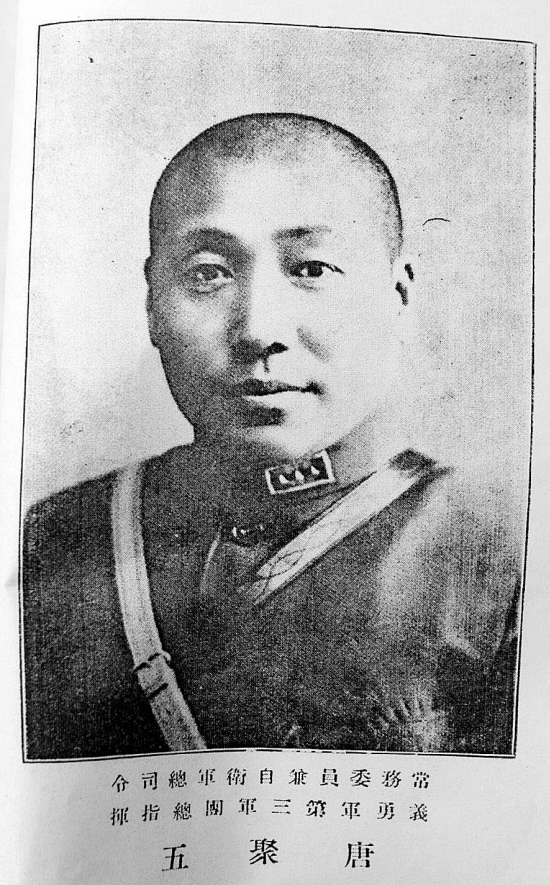 郭景珊和唐聚五都曾是张学良将军的部下。史料记载,“九·一八”事变后,郭景珊、唐聚五矢志抗日救国,联络志同道合之士组建辽宁民众自卫军,唐聚五任总司令,郭景珊任第七路军司令。1939年5月18日,唐聚五率部在河北迁安平台山与日军激战时不幸受重伤,壮烈殉国。1940年2月18日,《新华日报》发表文章指出:“唐聚五将军是‘九·一八’后揭起抗日旗帜的民族英雄之一。 ”