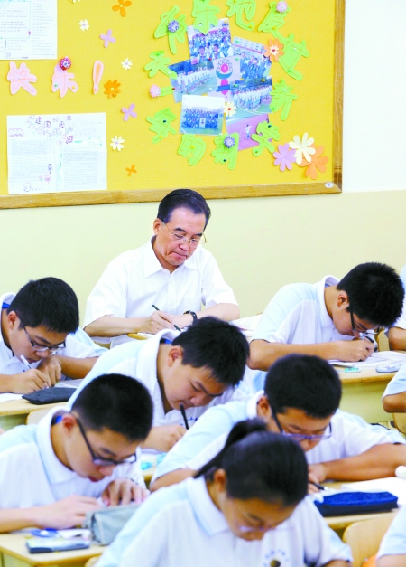 9月7日,各大媒体刊登了温总理与学生一起上课、共庆教师节的温馨图片。然而,细心人发现,图中六个学生居然有五个是“小眼镜”,而且清一色地扭着身子趴在桌上写字,还不如身边67岁的老人坐得端正!坐在温总理前面的那位男生几乎是把眼睛顶在笔杆上,眼睛离作业本不足10厘米。