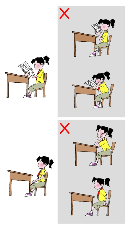 针对中小学生视力问题,广州书法教育家袁镇谦建议,中小学生在书写时应选取较为白净的纸张;阅读的印刷品应字体清晰、字形标准;环境照明要柔和不刺眼。此外,阅读时姿势也要保持正确,最好是眼和书本的距离为33厘米,光线不要过明或过暗;看电视时亮度和色彩应适中。