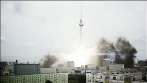 德国首都标志性建筑、高达366米的柏林电视塔像火箭一样在炫目烈焰中腾空而起,向天空“飞去”。这惊人一幕成为YouTube等视频网站当下热门点播内容。