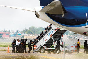 飞机降落后,劫机者要求与墨西哥总统卡尔德龙见面谈判,否则将引爆炸弹。持枪警察随后强攻了飞机,但并没有开枪,随后押走了几名嫌疑犯。警方后来透露,事实上只有一名劫机犯,扣押其他人是因为这名嫌犯告诉机组人员他有3名同谋。在警方搞清楚所谓的帮凶分别是“上帝、耶稣和圣灵”之后,这些人被迅速释放。