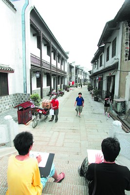 靖港古镇开街在即,古香古色的街巷吸引了不少城里学生前来写生。石祯专 摄