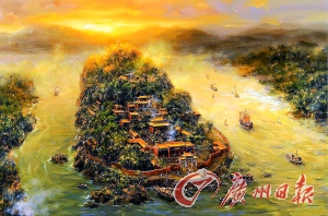 清代羊城八景《金山古寺》写实油画昨亮相