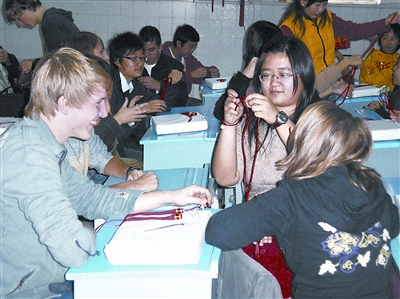 外校学生在和德国来访学生交流。
