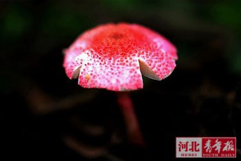 灵寿山里发现粉色蘑菇
