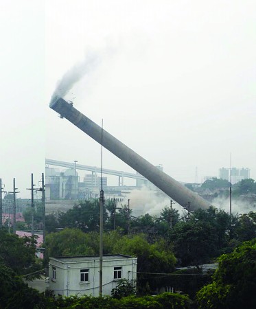 五旬老烟囱倒下了 老发电厂从此成为历史