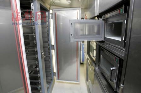 记者在餐车上看到,与传统火车不同,列车上的厨房是无烟厨房,摆着四台微波炉,还有一台咖啡机。“动车组列车速度很快,如果厨房有烟,会飘得整个车厢都是”。技术人员说,餐厅只提供快餐等便捷食品。