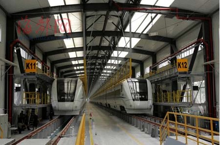 高达三层的动车检测平台,从上到下都能看得清清楚楚,也方便检修
