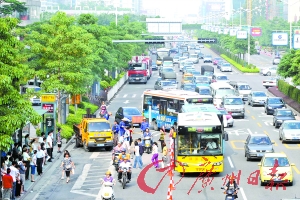对此,禅城交警一大队副大队长廖建清在现场表示,不少路段确实存在路口太多的现象,例如在季华五路的普澜二路至汾江南路口,短短的500多米距离,平均隔100米不到就有一个路口,右转弯车辆严重影响了专用道上公交车辆的直行。与此同时,由于两大干道车流量巨大,车辆遇到红灯,很容易一等就是一条长龙。