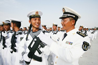在水兵方队,何健和何炜是一对鲜人为知的父子。父亲何健先后参加了国庆35周年、国庆50周年首都阅兵,加上这次以水兵方队政委的身份参加新中国成立60周年首都阅兵,他是第三次来到阅兵村。