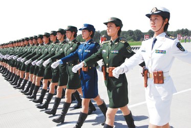 三军女兵方队英姿飒爽。郑蔚