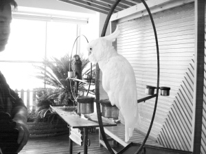 两只名贵的鹦鹉葵花(右)和金刚■本报记者 姜虹 摄
