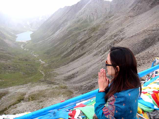 (虔诚的人儿在向圣湖默默倾诉着心中的祈愿)