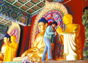 卧佛寺佛像贴金本周完成