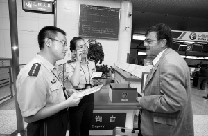 边检工作人员耐心解答外籍旅客的问题记者龙宇丹/摄
