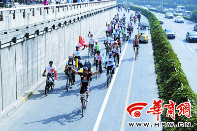 自行车爱好者在二环上骑行本报记者 赵雄韬 摄