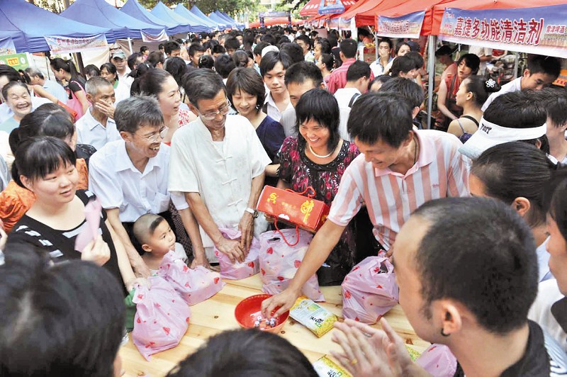 19号桌的庄汉玉手气特别好,他不仅博了个“状元插金花”,还有一个对堂,激动得顺势帮工作人员发起了奖品。“这么多东西,怎么弄回去啊?一起打车吧?”扛着两箱啤酒、一箱酱菜和一大包奖品的高阿姨唤着他,不知道的还以为他俩是一家人,其实,在昨天下午之前,他们还不认识呢!