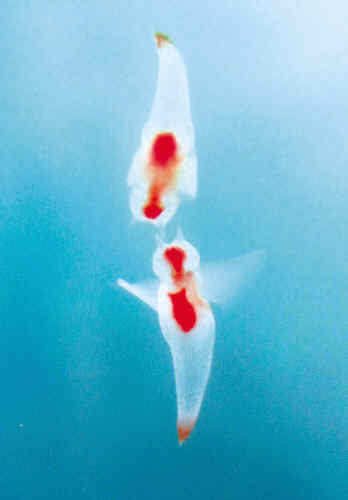 天使水母长度只有2厘米左右,它们的鳍大得好像翅膀一样,拖着长尾悬浮在水中,与天使的形象有几分相似。更有趣的是它们的身体是半透明的,有点朦胧的感觉。据介绍,天使水母其实不是水母,也不是萤火虫,属于软体动物,它们雌雄同体,生活在北极、南极的冰层之下。