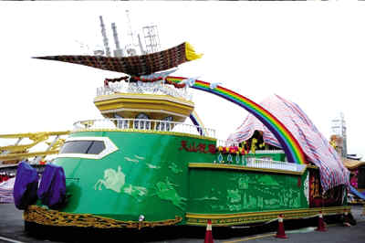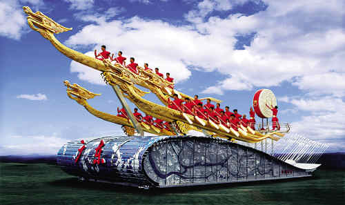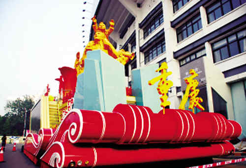 新快报讯(记者 陈淇铧 通讯员 刁定宏 实习生 赵庆)10月1日,新中国成立60周年庆典当天,昂扬前行的五条金龙将出现在群众游行队伍中。碧波珠水,渐渐潮涌。鼓声雷动,桨手振臂一吼,奋力挥划……这精彩的“赛龙夺锦”,就浓缩于广东彩车“方寸之间”。“参加检阅的彩车,全国有60多辆。一进彩车村,一见我们的车,央视焦点访谈就直奔过来了,北京市委书记刘淇则悄悄竖起了大拇指……”在昨日的通报会上,省文化厅副厅长杜佐祥难抑欣喜。