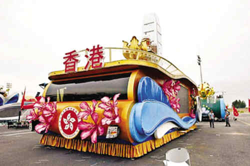彩车游行将在阅兵式后上场。据悉,届时,广东彩车从东观礼台驶至西观礼台,前后为3分20秒;当中经过天安门城楼主席台的时间,为1分半种。也就是说,通过电视直播,老广们最多有2分钟能观赏到自家的彩车。
