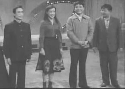 马季、姜昆、刘晓庆、王景愚(从右至左)主持首届春晚。截屏图