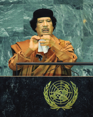 当天,卡扎菲是第三位演讲的领导人,排在美国总统奥巴马之后。按照发言规则,每位领导人的讲话应控制在15分钟左右,显然卡扎菲就没打算遵从这一规矩。