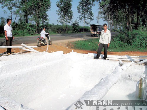 “石灰池离公路才两米远,又没有防护措施和警示标志,太危险了。”23日下午4时许,陆超的伯父陆五森站在武鸣县罗波镇万泉开发区路口,指着出事的石灰池说。