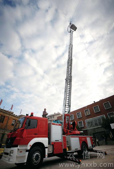 云梯车能解决高层建筑灭火难的问题。本报记者 段玉良 摄