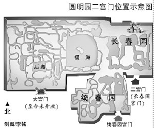 圆明园管理处表示,在圆明园的所有宫门中,只有大宫门和二宫门(长春园宫门)是供皇帝进出使用的。在1860年八国联军入侵浩劫后,大宫门至今未开。二宫门为唯一一个已修复开放的供皇帝进出的宫门。