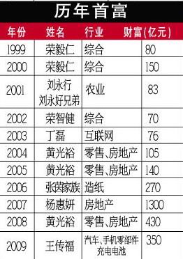 胡润2009百富榜:张茵、王传福成首富、榜眼的看点(组图)