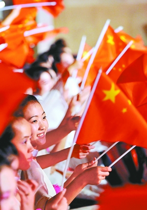 9月30日,“祖国颂”演唱会在太原演出,观众挥舞国旗,为表演喝彩。