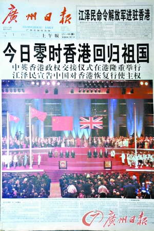 1997年7月1日,《广州日报》97版“香港回归”纪念特刊开创报业纪念性特刊先河,开始掀开《广州日报》创新中国新闻报道形态的序幕。
