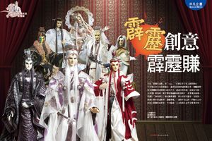 一九五○、六○年代为台湾布袋戏的全盛时代,约有五百家戏院同时上演布袋戏,但后来,风行的布袋戏能与时并进的寥寥可数,迄今仍让人惊叹连连的则只有霹雳布袋戏。云林虎尾黄家兄弟的创业史,写下的霹雳纪录甚至包括三年前在“台湾意象”选拔活动中,霹雳布袋戏胜过玉山,拔得头筹。