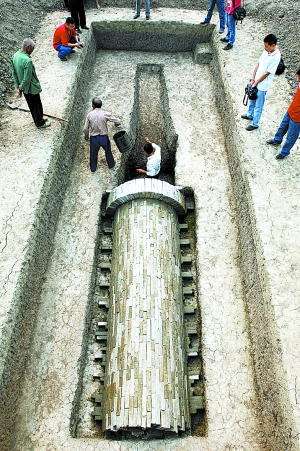 首现带墓主姓氏古墓葬 北京日报 《北京日报》官方账号 2009.10.0706:40 关注 10月6日,考古人员准备对墓葬进行清理。湖北省襄樊市高新技术产业开发区韩岗村发现的这座墓葬,其封门砖上的姓氏文字填补了襄樊市文物考古发掘的空白。专家初步断定该墓葬为魏晋隋唐时期墓葬。新华社发