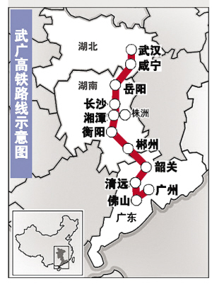 武广高铁路线示意图