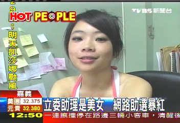 民进党为选战打出美女牌,图为民进党“立委”张花冠的网络小秘书李小洁