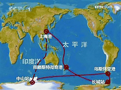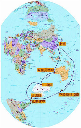 按计划,雪龙号此行的大致路线是:从上海经新西兰的克莱斯特彻奇港到长城站,再从长城站到阿根廷的乌斯怀亚港进行补给,后经此港到达中山站,完成科考任务后返回上海。