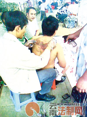 昆明街头出现些纹身小摊 受到不少青少年的青睐