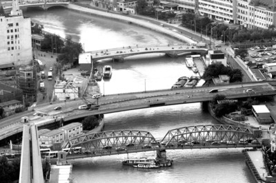 吴淞路闸桥(中)今夜将拆除,苏州河口再不见三桥并跨 晚报记者 任国强 现场图片