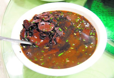 回到家中,我向熟谙长沙美食、每日四处吃喝的“老口子”曹亮兄打听。曹兄说,其实萧墙美食除了狗肉闻名外,排名第二位的是水鱼,名气也做得相当大。当然,此季干塘,萧墙美食应有土鲫鱼提供,土鲫鱼可惜刺多。此外,酸菜猪血汤味鲜汤美,酸菜和猪血都别具风味,适合美酒狗肉风流之后清理一番口腔肠胃。曹亮说,当然,他有点担心酸菜中会不会出现没洗净的沙粒,他害怕硌牙。他笑了笑,其实萧墙美食最好吃的是菜单上点不到的菜:熬牛脚,牛脚带骨含蹄在大锅中熬煮。筒子骨里的骨髓,想着就要流口水,不过百分之百要提前预订才有得吃。