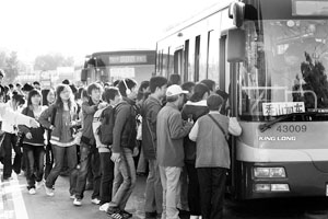 据了解,今天乘客比平时增三成,而634路加车15辆,331路加车10辆,总共加跑200趟,比平时增加三成多,完全能够满足乘客的需要。