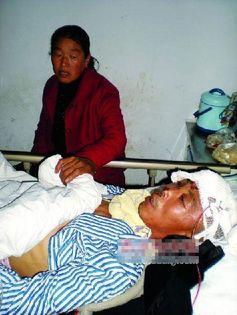 村民成爱国天灵盖被打烂,现在还呆在医院里医治。