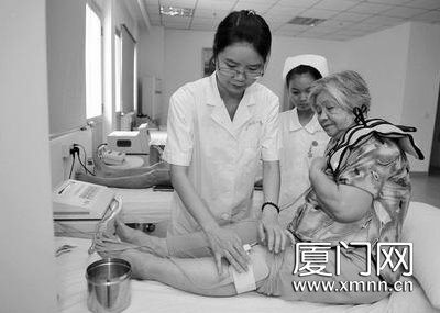 ■护理人员为老人做理疗按摩。刘东华 摄