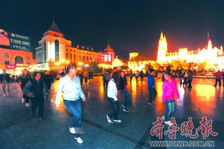 ▲洪楼广场成了历城区市民的休闲场所。本报记者左庆摄