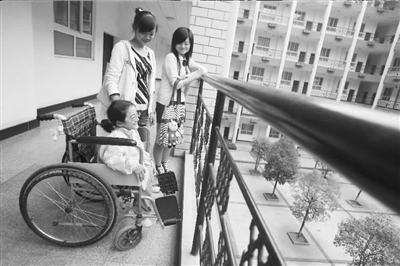 因为轮椅生活不便,王盼母女租住校外—间小平房。除了上课,王盼全部生活都呆在—间不到20平方米的小屋里。母亲白天送她上课后去学校周边的小吃店帮工,“给烧烤店洗海带,每个月650块钱,除去150元房租,就是我们娘俩的伙食费。”王建霞说。