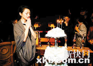 重要电话接听完毕,就轮到公司为周迅表示一番心意,推上了两层蛋糕。周迅说:“希望身边所有的朋友、认识和不认识的人,都能平平安安……”正当她准备切蛋糕的时候,王中磊却让她向湖的远处看。只见周迅看了一眼,就吃惊地捂住了嘴——湖上驶来一艘小船,上面铺满了鲜花,还有两名白衣天使。领头的一位手捧一束非常巨大的鲜花,后面一位则捧着蛋糕的第三层。这时候,王中磊又捧上一只盒子,说这是大家送给周迅的礼物。盒子里是若干只珍珠鸟,据王中磊说珍珠鸟是象征爱情的。随后,周迅将这些珍珠鸟放生。(新快)