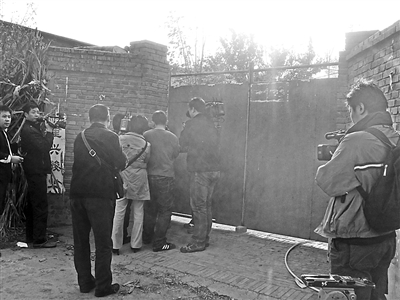 | 各路媒体的“长枪短炮”在闫德利家门口“围堵”其乡邻。 |