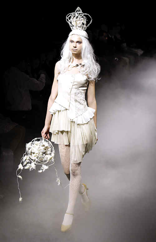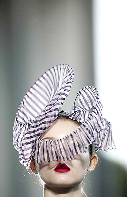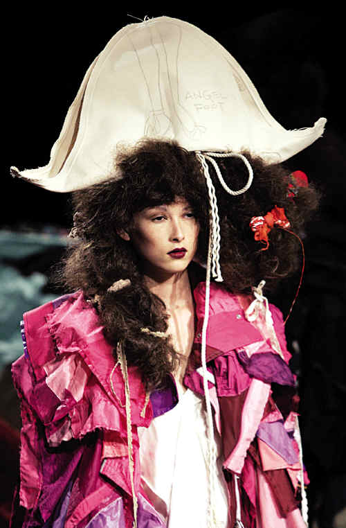 东京服装周设计师斗古怪 金羊网-新快报 2009.10.2101:32 关注 白天使。日本著名成衣、婚纱设计师田代淳也展示新作。 海盗女。日本设计师由古桥彩新一季作品想必灵感是来自《加勒比海盗》,不过这是女版。 蚊帐帽。MintDesigns作为日本设计品牌的"黑马"逐渐在时装界展露其锋芒。 糖果纸。日本知名服装设计师岩谷俊和的新作品。 东京服装周开幕,设计师们敢于尝试各种怪异的新潮风格,展示了天马行空的想象力。